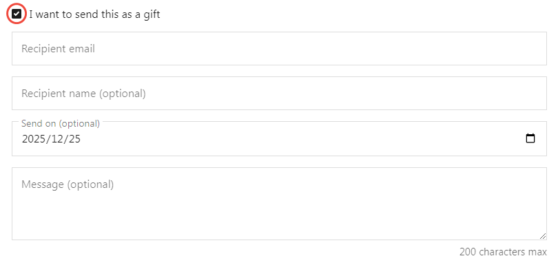 If you want to send the gift card to someone you loved, just tick the box, enter their email, pick a date, and leave a sweet note—they’ll open your heartfelt gift and feel your love.