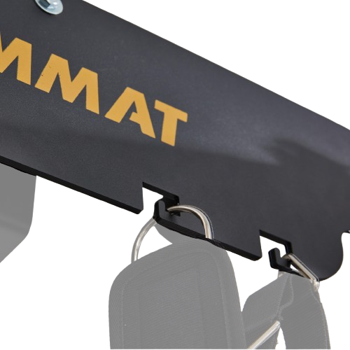 The multifunctional hook storage backboard at the rear allows you to hang various training accessories for easy access. A vertical Olympic bar storage holder is also built into the top area, helping you create a neat and efficient training area at home.